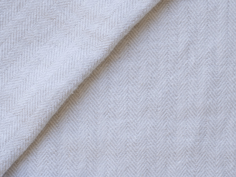 表面を起毛させることによって温もりを感じる、ヘリンボーン柄のリネン100%生地。触り心地の良い、しっかりとした厚手の生地で、ソファカバーや寝具などの用途に使っても素敵です。