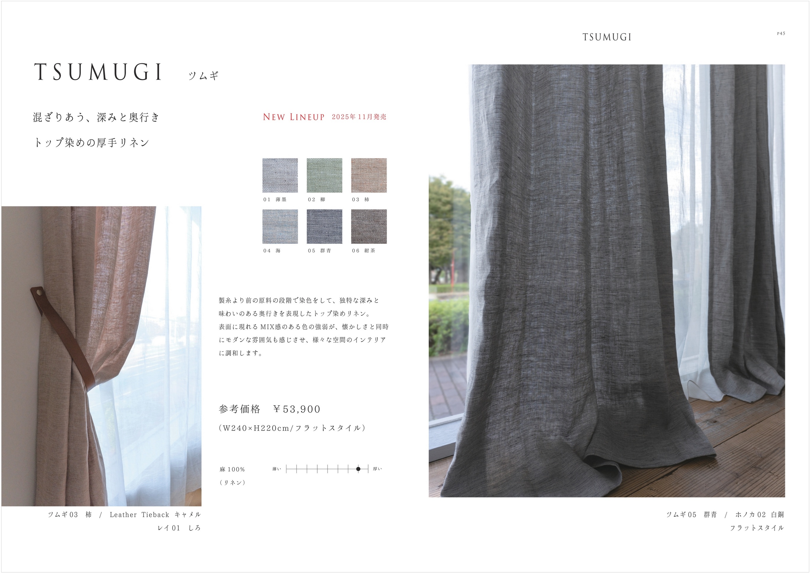 natsusobikuの麻のカーテンをお部屋に取り入れた際のイメージを、これまで以上にお客様に感じて頂けるカタログとなっていると思います。